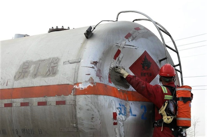 2018年12月3日早晨5时46分,位于宁东镇G20青银高速宁东服务区向南1公里处发生一起挂车追尾一辆装载26吨异丁烷的罐车,导致罐车大量异丁烷泄漏,情况十分危急。我公司接报后,立即派员积极配合宁夏消防人员,成功处置并排除了异丁烷罐车泄漏事故险情。